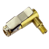 Motopressor Clip On 90 Degree Valve Extension makes it easy to access your tyre's valves with the clip-on 90-degree valve extension. To make it even easier we suggest attaching the chuck to your pump hose before attaching it to the tyre. Remove your valve cap, press the silver lever on the chuck, push it firmly onto the tyre valve and release the lever. If you don’t get a tight seal, screw the chuck clockwise a quarter of a turn and it should seal.