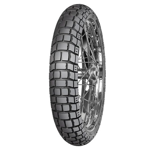 For the rider not willing to sacrifice high speed road performance for better off-road capabilities in all-weather conditions. The Mitas ENDURO TRAIL-ADV 120/70-19 motorcycle tyre features Multi Compound Tread Technology (MCTT) to deliver excellent mileage and cornering grip even at low temperatures, whilst the high silica content ensures excellent wet road grip. The unique construction technology and specially designed longitudinal tread pattern provide superb straight-line stability, smooth handling and low road noise for heavy adventure motorcycles.