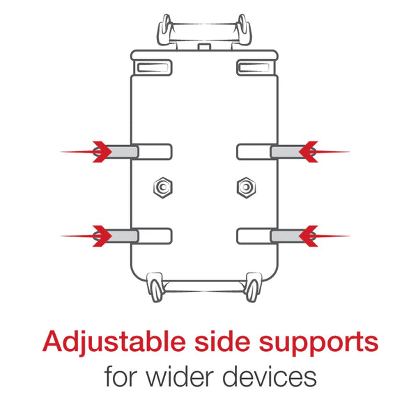 The RAM® Quick-Grip™ XL Phone Holder with RAM® Vibe-Safe™ Adapter & Ball (RAM-HOL-PD4-462B) is a combination of the RAM® Quick-Grip™ XL Phone Mount with Low-Profile Small RAM® Tough-Claw™ and the RAM® Vibe-Safe™—our vibration damping accessory is designed to protect electronic devices from a wide range of vibration frequencies. The RAM® Vibe-Safe™ is based on an NPT connection point and boasts the versatility to rotate between portrait and landscape while keeping your device secure in rugged environments. The holder is compatible with handheld devices that will fit the dimensions listed below, it is important to verify the dimensions of your handheld device with a case/sleeve/skin when determining the overall size.